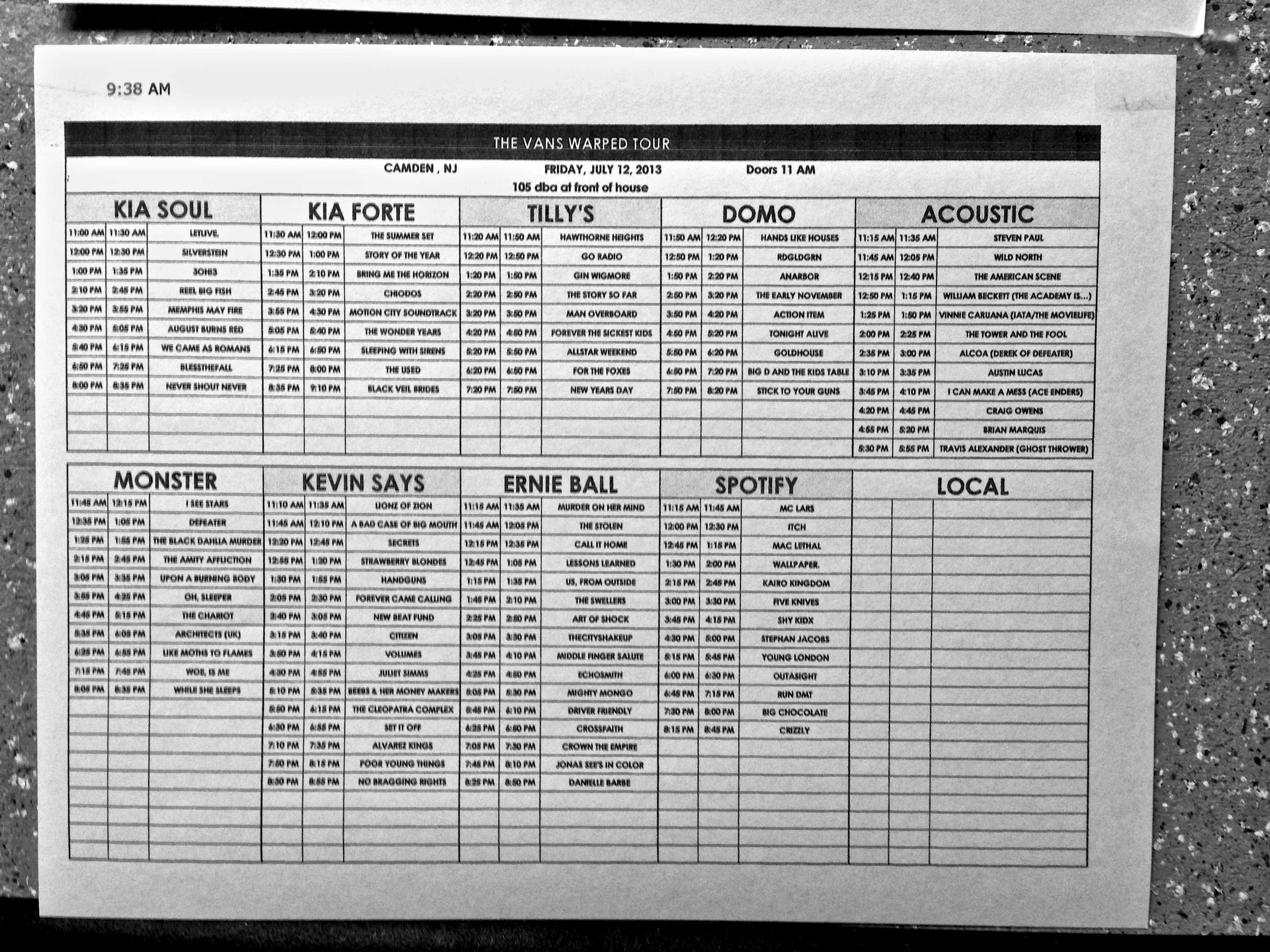 Warped Tour // Camden Schedule © 2013 Henry Chung