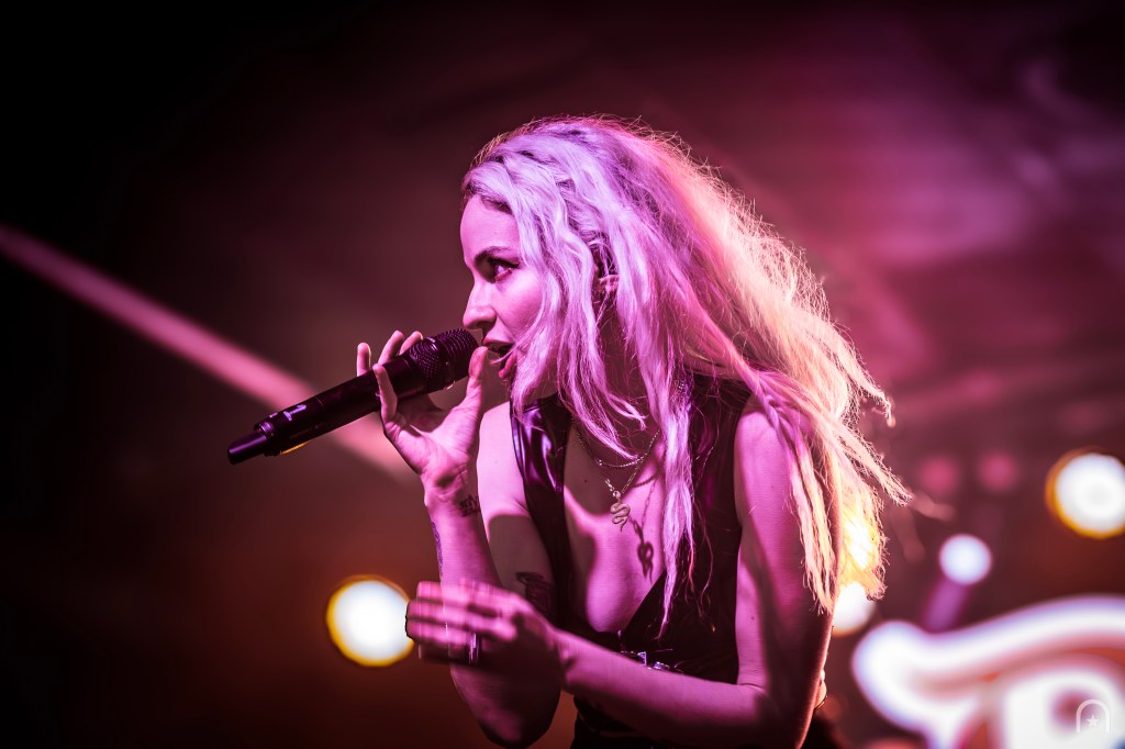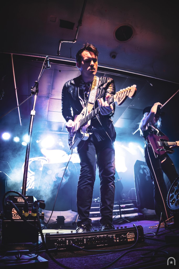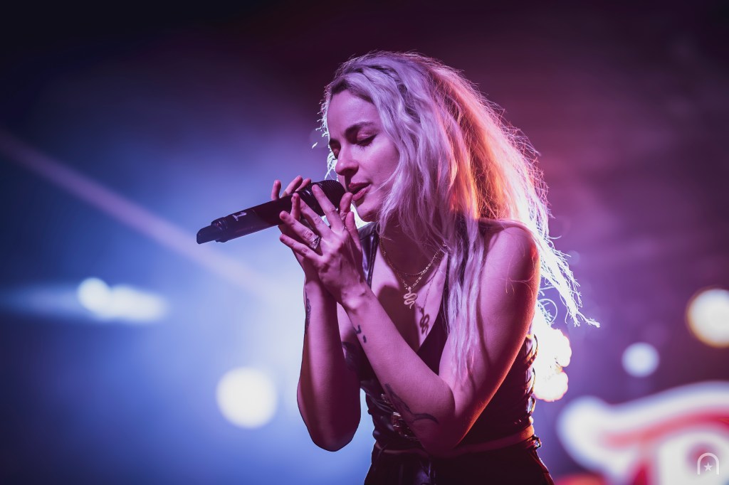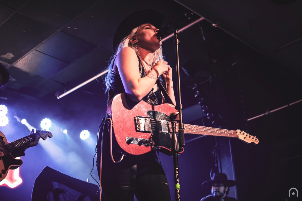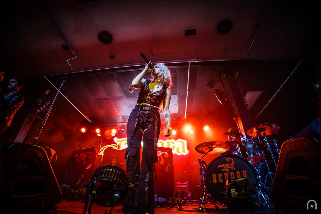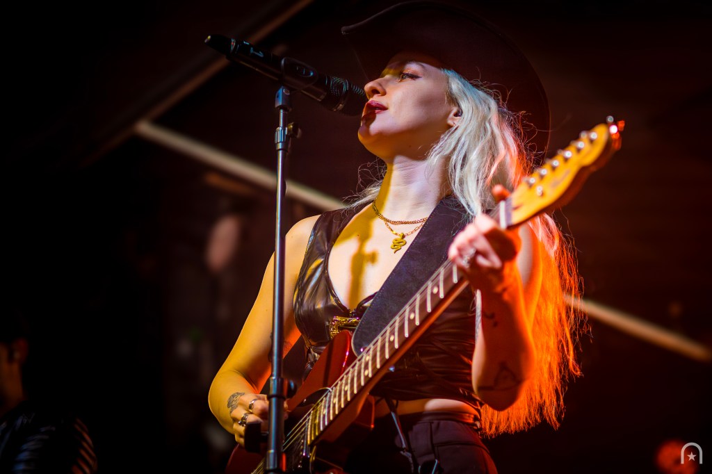 The house lights dimmed. Stepping on-stage was a gentleman in a cowboy hat behind the drums and a guitarist. They began with an instrumental then lead into “Not Dead Yet”. Devora appears on stage through the fog with a cool swagger. This was our introduction to her blend of outlaw country twang and dark smokey pop.
