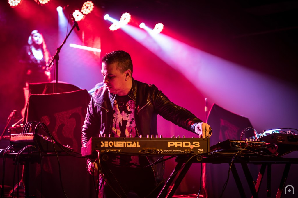 By now, the room is packed with many longtime followers of the Thrill Kill Kult. More fog was pumped onto the stage. Anticipation intensified. At 9:45pm on the dot, the house lights dimmed. Buzz McCoy stepped out on keys, along with Mimi Star on bass, and Justin Bennett on drums. They started us off with “Room on the Moon” until Groovie Mann appears. Next they flowed right into “Delicate Terror”. This felt less like a rock show and more like a dance club. Next they played “Nervous Xians.” I’ve been curious on how this song sounded live. Days earlier, I was talking to a friend about how I’m such a fan of “After the Flesh”. That was the song that got me into TKK but I don’t ever see it on their setlist. She tells me that they had reworked it into “Nervous Xians.” Honestly, I’m not a fan of this version. It felt neutered. How dare they!?